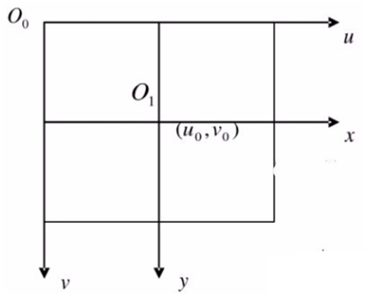 Assuming (u0, v0) represents the coordinates of O1 in the u-v coordinate system, dx and dy represent the physical dimensions of each pixel on the horizontal axis x and vertical axis y respectively;